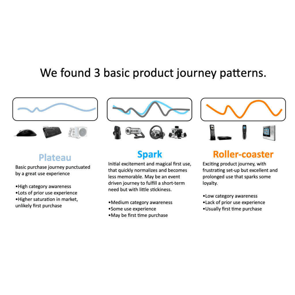 When looking at customer experience one has to consider elements of the experience that precede usage, such as the experience of packaging. Or one might need to consider ‘maintenance’ (or ‘service’) tasks that occur many months later – for example, reprogramming your Harmony remote after changing your TV to a new model after 18 months of perfect experience using it.
